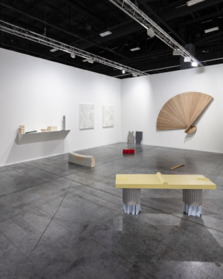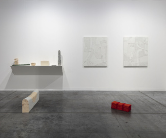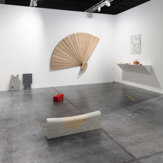 For the 2022 edition of Art Basel Miami Beach, DOCUMENT presents a two-person exhibition of recent works by Elizabeth Atterbury and Gordon Hall. These two artists share a commitment to creating works with simple materials including wood, ceramic, metal, concrete, and cardboard. Each employs color as an integral component yielded by a range of media: paint, pigment, colored pencil and stain. Admixing characteristics of painting and sculpture as well as material and sign, both artists work in close proximity to the social. Yet both also insist on art’s unique potential to disarrange normative codes and gesture toward unmapped futures.