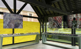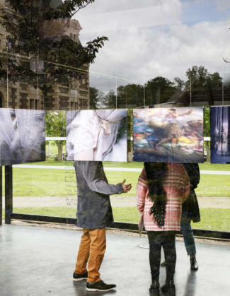 We produced 18″x24″ dye sublimation prints with custom cleating system to be suspended for external exhibition for Sandra Binion, Distillé / Searching for Emma at Matmut pour les Arts in St. Pierre de Varengeville, just outside of Rouen, France.
