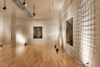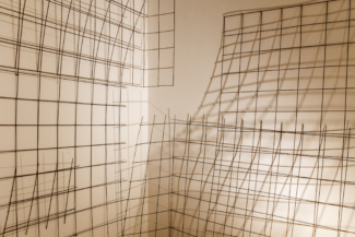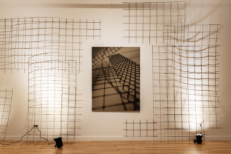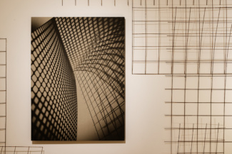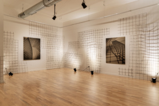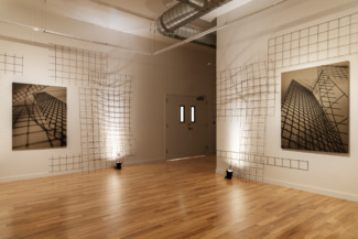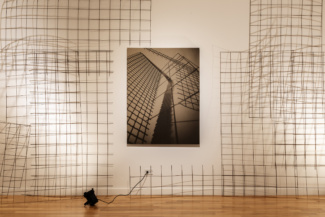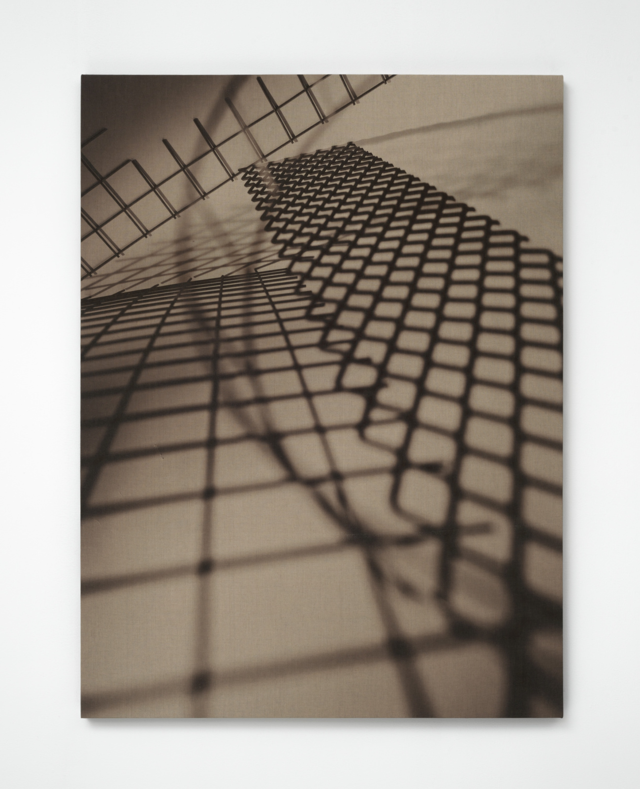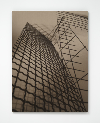 In the work of artist Barbara Kasten (b. 1936, Chicago), the camera figured into her early practice insofar as it could document ephemeral phenomena of light and shadow cast upon the walls of her studio. They are photographs that capture images in space through the means of recording. Once the light cut, the work too ceased to exist, yet the translation of the experience remained in circulation. Then as now, the structures conceived within Kasten’s studio did not function as mere stages or props, but rather as sites for living—fragments of architecture whose photographs exist as a record of that life. In the imagined structures that compose this most recent body of Kasten’s work, we see glimpses of skyscrapers, towers, and pavilions; allusions to sites of commerce and trade, places that hold exhibitions within their design. While the impression of buildings are retained by the close crop of her lens, the product of the image is the result of careful staging. Across the sepia toned prints on linen, the artist’s studio constructions of industrial metal grids typically used as concrete facing—a reinforcement material that allows other things to stand—are transformed by the camera. Each of Kasten’s observations of the severe objects are exacted in lyrical configurations that meld oppositions between substance and shadow, light and absence. The anatomy of architecture is communicated through abstraction.