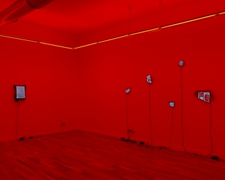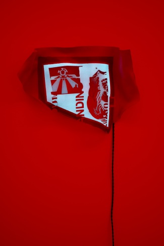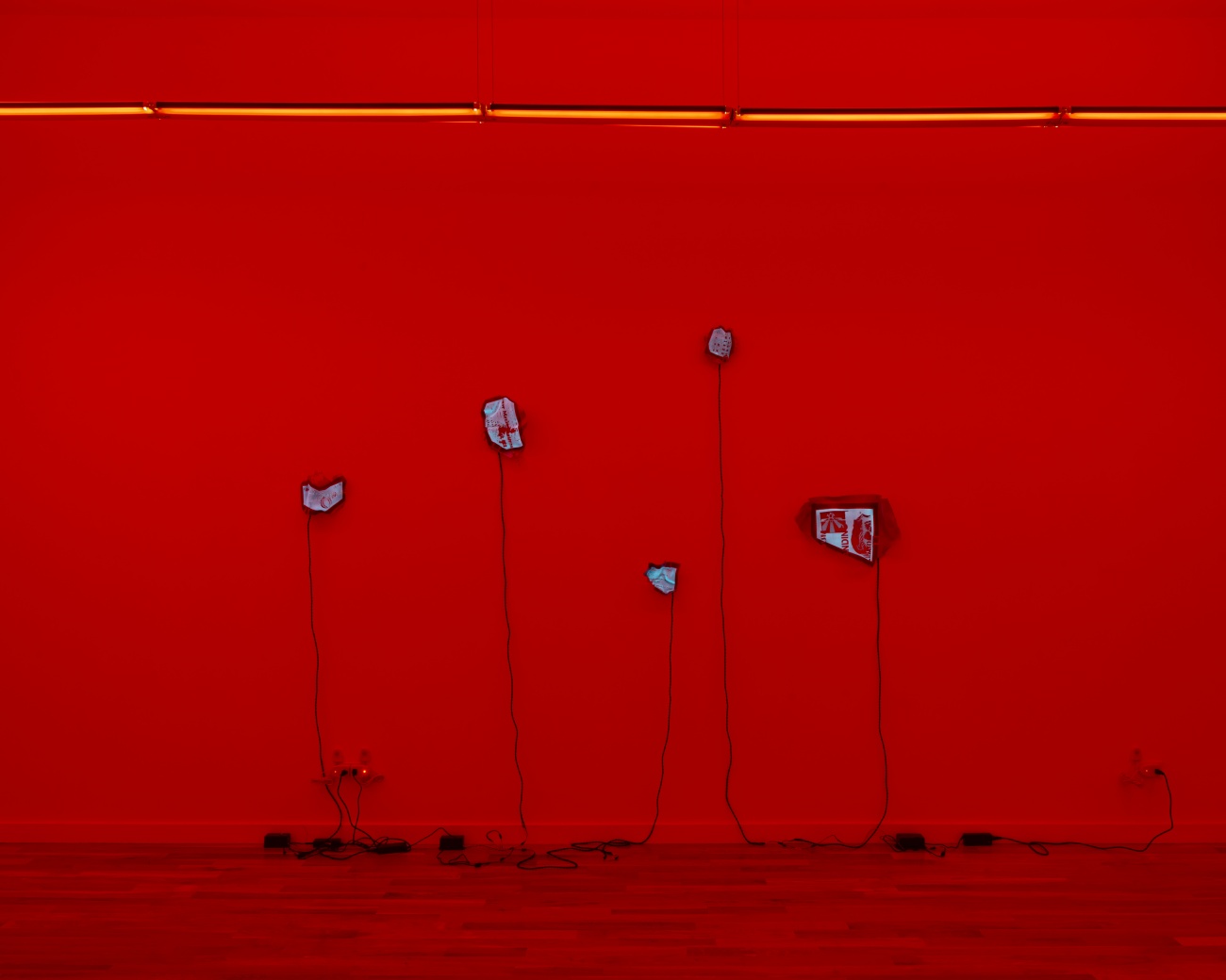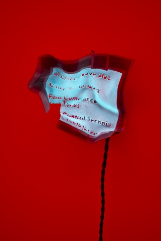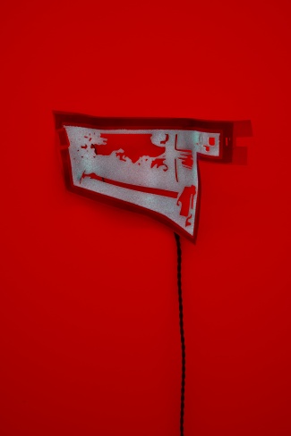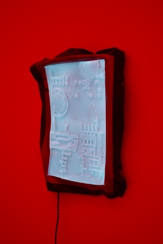 Routed through 3D displacement mapping, segments of the archives take the form of thermoformed and perforated plastic collage works. Each function as a light emission panel through the artist’s use of custom electronics and electroluminescent paint.