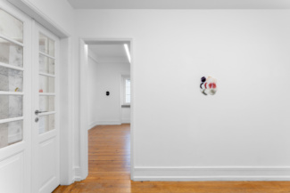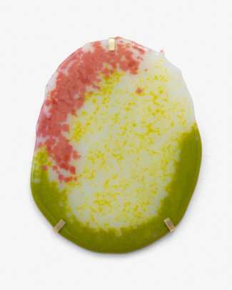Over the past two decades, Rafferty has created a vast body of wall works, sculptures, and installations that humorously and aggressively grapple with images and iconography in contemporary culture. While some of the works in her exhibition at DOCUMENT Lisbon were made or initiated as early as 2019, Pieces marks a change in Rafferty’s approach to making and exhibiting artwork. After a year of writing and revising a forthcoming book on imagery, Pieces comprises bodies of work entirely devoid of photographic image. Produced in a small kiln in her Brooklyn studio, the glass pieces in the exhibition are color studies, compositions made from scraps, and other studio experiments made during a time of challenge and change. Themes that emerge in the work include reflection, as in the suite of black glass collages with broken, mirror-like, bubbly surfaces; a possible return to portraiture, as in the translucent, polychrome, rounded, head-sized forms; or, finally, play, as in the assemblages of multicellular, bubble-like shapes. Mainstays of her work, such as formal invention, elliptical logic, specific and culture-bound color, and the breaking of the rectangle on the wall, remain present. Continuing her work in the opaque, translucent, and reflective medium of glass, these collected pieces can be seen individually as humble sketches—often pieced together from slivers, powders, and shards—or taken together as a statement. Pieces.