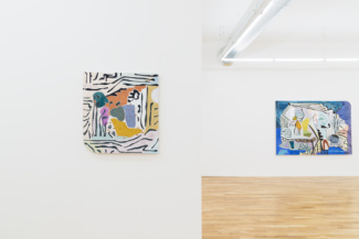 Glimpses of the representational world thread through Lipke’s entrancing compositions, in which embryonic shapes become vessels for sentiment and personal resonance. Specific or singular references can be elusive, but sometimes assert themselves with intent. One example is Lily Klee in Venice, 2023, which includes an interpretation—much more so than a copy—of Paul Klee’s Small Room in Venice. The painting-within-a-painting sits atop of a recumbent figure that is presumably the artist’s wife, who financially supported her husband’s artistic career as a music teacher while putting aside her own creative endeavors. It is a chapter largely underestimated or even outright ignored in art-historical literature: Lily Klee as literal support for her husband’s art. Akin to the Klees’ mutual imbrication, Lipke’s paintings carve out a visual lexicon that embraces contradiction and coalescence in equal measure.