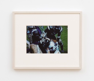 This final image yields a “drawn” composition of a material meditation on the formal processes of image transmission and translation across media, coupled with then-current events, which also hauntingly remain relevant to the contemporary viewer. These works focused on sporting events in the mid-1970s and Pindell turned to images from war-torn countries throughout the 1980s.